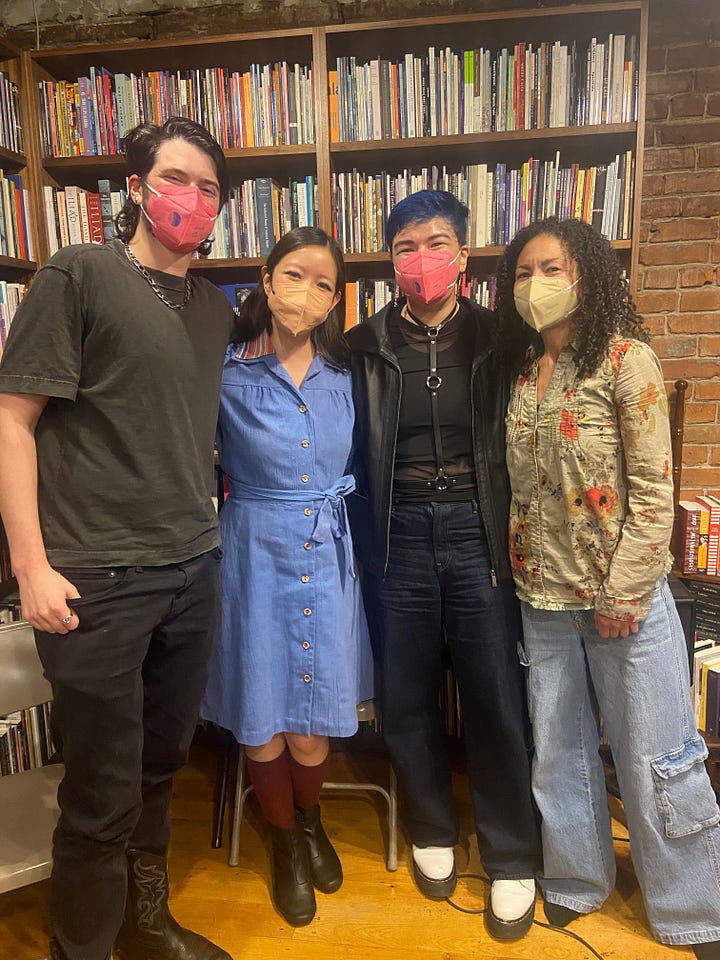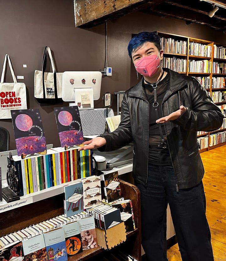 2025 was the first full year of Other People’s Poems, and it was delightful beyond measure. For those of you who aren’t in the know, Other People’s Poems is a poetry open mic & reading series that I have co-hosted with bestie Cody Stetzel since Fall 2024. The series celebrates readers and lovers of poetry, and each month (roughly), we invite three featured readers to read their favorite poems written by (you guessed it) other people. In 2025, we had ten events and got to feature some of the best talent in Seattle, including Paul Hlava Ceballos, Patrick Milian, Woogee Bae, Cass Garison, Constance Hansen, nanya jhingran, Oliver Brickman, Mateo Bracken, Garfield Hillson, Diana Xin, Amy Hirayama, Joyce Chen, Sullivan Forderhase, Shelby Handler, Dujie Tahat, Ching-In Chen, Kalehua Kim, Corinne Manning, Bill Carty, Rhea Melina, Jay Aquinas Thompson, Rivka Clifton, Laura Da’, Esther Lin, Troy Osaki, Alexa Luborsky, Mita Mahato, Katie Lee Ellison, Dario Cvencek, and Aster Olsen. We were also fortunate enough to receive funding from 4Culture to help us pay our readers and the volunteers who make OPP possible! And we invited wonderful guest hosts and curators Gabrielle Bates and Constance Hansen to hold it down for us while I released my book and Cody got married. Speaking of which…
